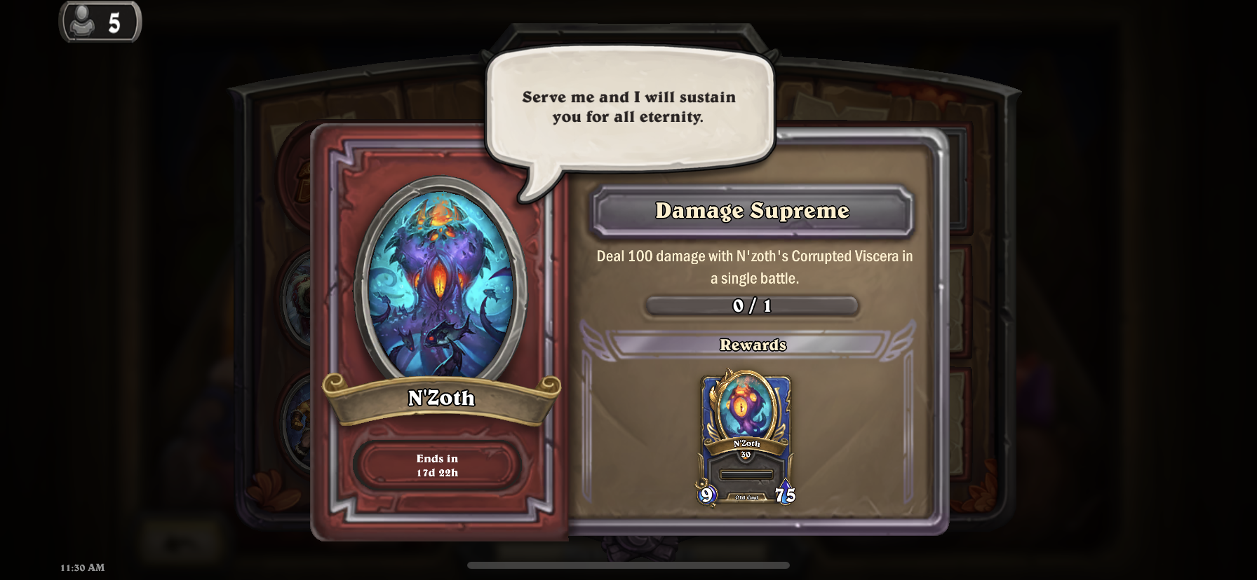 - Requirement: Deal 100 damage with N'zoth's Corrupted Viscera in a single battle.