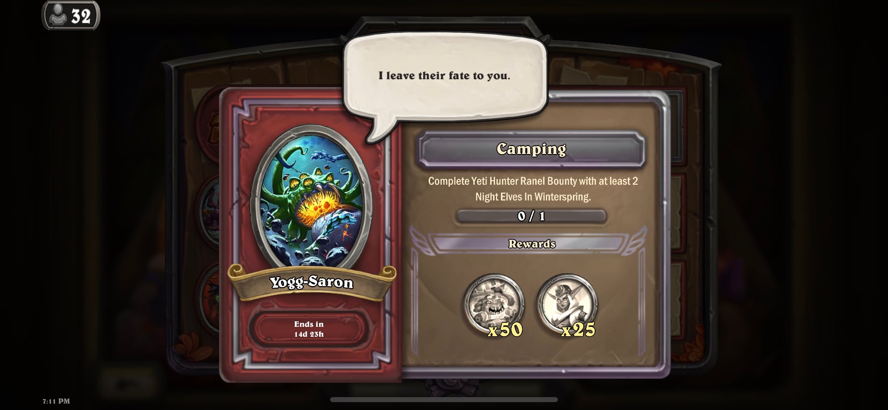 - Reward: 50 Yogg-Saron coins, 50 Lord Slitherspear coins.
