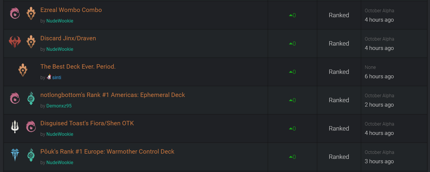 Out of Cards has been hard at work to get the Legends of Runeterra Deck and Deckbuilder sections ready before the next Preview Patch. The staff has already added some of the most popular decks from the previous event, but we'd like to see your own! Support for importing decks from the game is coming later this week.