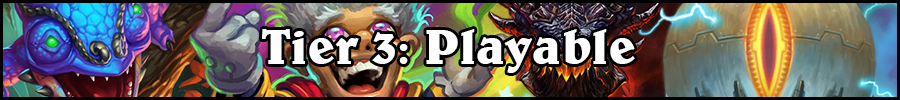 Cairne Bloodhoof - Playable in deathrattle and midrange decks, low play rate.