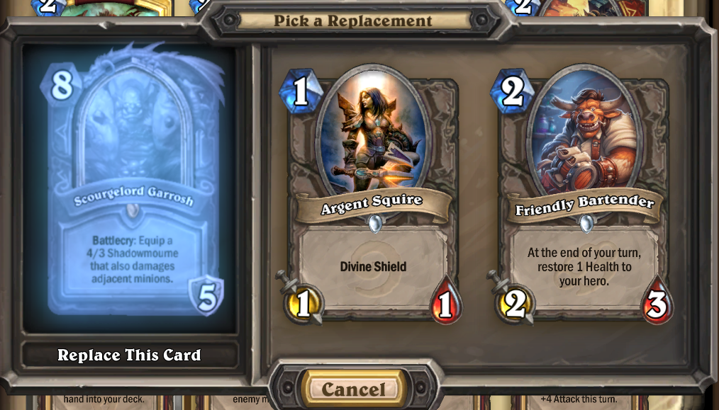 The replacement feature looks at the mana curve of your deck and makes sure you have some cheap minions, some medium, some large, some spells. It tries to suggest good cards in the areas you are missing.