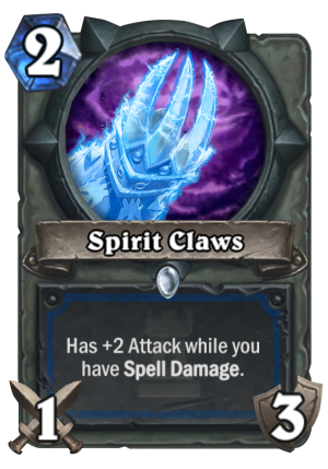 [Hearthstone Card (Sprit Claws) Not Found] - didn't think I need to give Shaman an evegreen way to have a Spell Damage archetype. Also hard to balance due to Shaman's Hero Power.