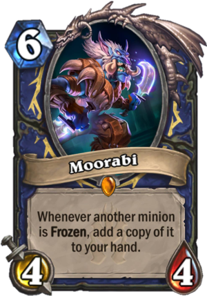 Moorabi - ah yes, the ever so legendary Freeze Shaman. I actually thought of trying to incorporate some of it's elements, including Moorabi, into the classic set to make it work, but in the end, Shamans aren't exactly known to master ice and more known as masters of the four basic elementals - air, earth, water and fire. Also too meme.