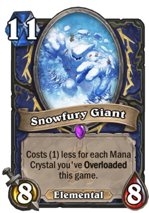 Snowfury Giant - a solid body that rewards you for deckbuilding for heavy Overload cards, but I'm against most cost reductions in core sets. However, it could make Tornado look better, as its every instance of Overloading would contribute to this boy. xd