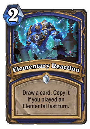 Elementary Reaction - card draw is still needed for the class despite being its weakness, but this card combines both card draw and generation to give Shaman an evegreen tool to draw, generate value and, most importantly, have a reason to play Elemental decks.
