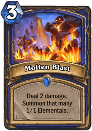 Molten Blast - as much as I hate to break the rule I pointed to myself when trying to include Scholomance cards into the Hunter rework, this will probably make the cut. Some may say that it limits design space due to tying the number of elementals summoned to the damage, and I do have a bit of concers too. But in the end, it can make up for strong archetypes over an extended period of time, and at it's base is stable enough.