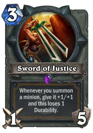Rallying Blade - adds Divine Shield synergy for the evergreen set. Not too strong, but pretty decent.