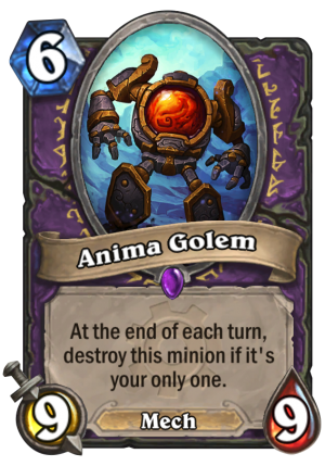 Anima Golem - I actually really liked this card to be in the Classic set, teaching the importance of minions and rewarding you with a huge body. Ultimately pulled it off because of the Mech tag, which isn't really Warlock's thing.