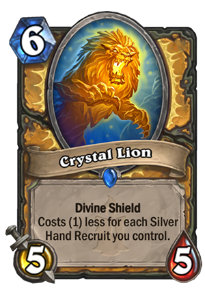 Crystal Lion - was thinking of this card as something to include Silver Hand Recruit synergies, but went for a simpler and a bit more balanced effect. A large minion that can be cheated out pretty quickly can feel a little chaining to be evergreen.