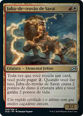 Every time you cycle a card, you can pay (2). When you do this, Thundermane of Savai deals 2 damage to target creature and you gain 2 life.