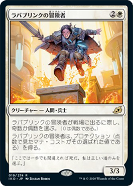 Lavabrink Adventurer has protection from the chosen converted mana costs.