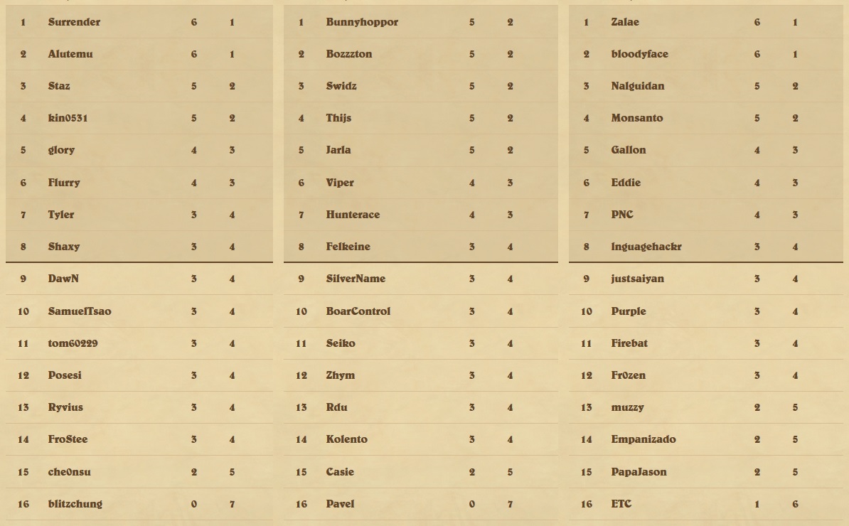 The switch from Conquest to Last Hero Standing also changed the fortunes of the players. From last week's respective top 4s, only one from each region made it further than the mid-week Swiss rounds, and only one altogether was able to replicate their top 4 success (Surrender in APAC). This meant that the point standings for each region evened up quite a bit. In Asia-Pacific, Surrender's back-to-back Final berths meant that he already booked his place on Division A, but the other spots are very much up for grabs. In Europe, nobody can breath freely just yet with only 6 points separating the points leaders from 16th place. And if you thought that sounds close, the opposite ends of the table in Americas are only separated by 5 points. The stakes for next week's matches are truly high.