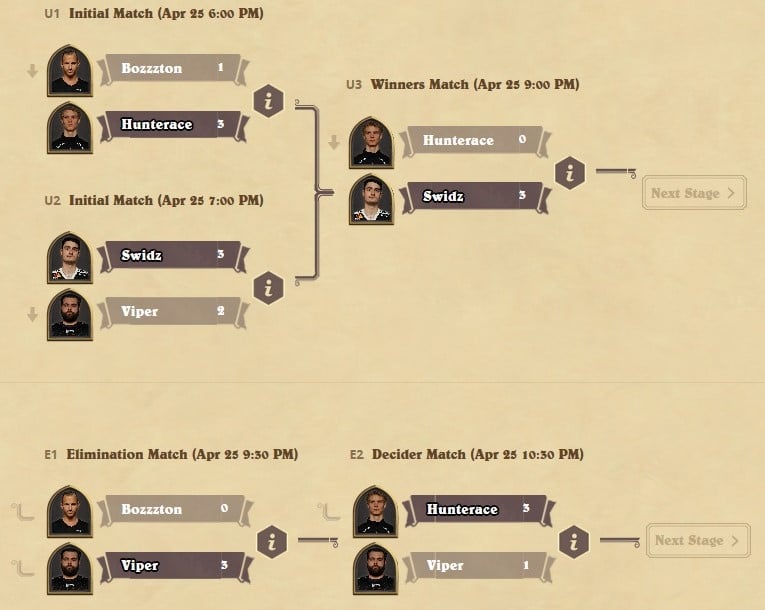 Here are the VoDs from the three days of competition Blizzard wanted you to see (i.e. excluding the Swiss portion, see tournament format). Timestamps have been provided in a spoiler below the video if you're only interested in certain matches.