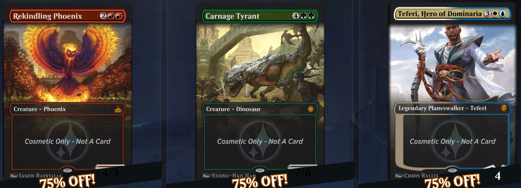 Today is a big day for deals on MTG Arena with some great non-standard cards getting discounted heavily - hello Historic! Oh, you can also get a Dominaria pack for a 70% discount which is cool too.