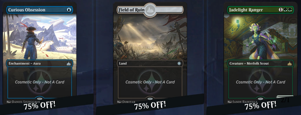We've got a bunch of Historic card styles on sale today in the MTG Arena Store which includes a 30% discount on a Dominaria card pack!