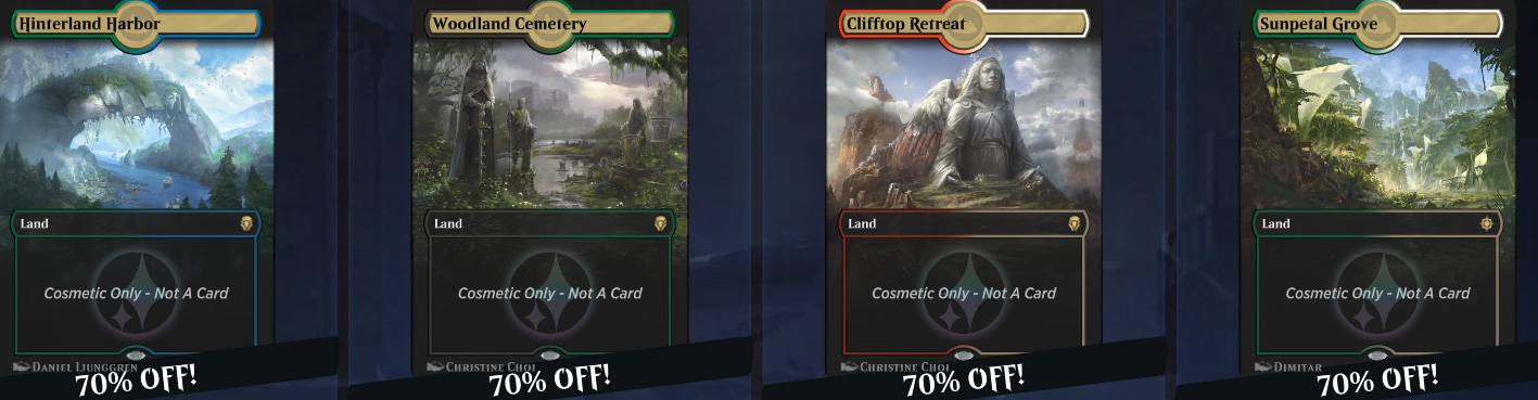 We've got some check lands card styles from Ixalan and Dominaria on sale today! They're all the same price, a sweet 70% off so go get 'em, champ!