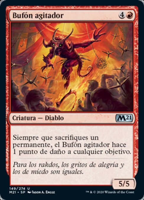 Whenever you sacrifice a permanent, “Playhem Devil” deals 1 damage to any target.