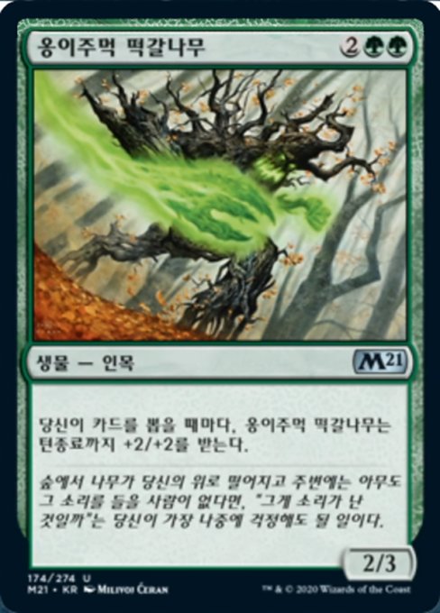 Whenever you draw a card, Knotfist Oaktree gets +2/+2 until end of turn.