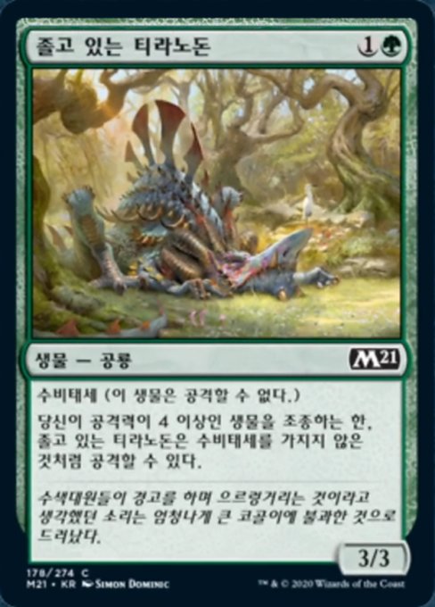 Dozing Tyranodon can attack as though it doesn’t have defender, as long as you control a creature power 4 or greater.