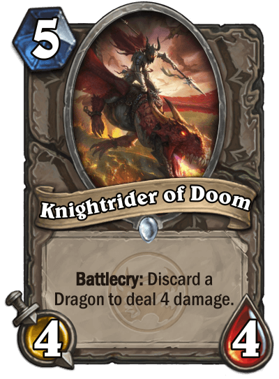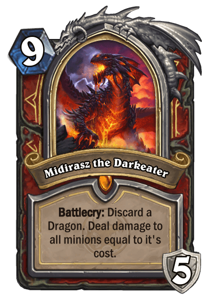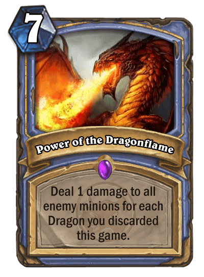 Thanks for pointing the typo, totally missed it. About the spells, i see why you don't like the fact that they are useless if you're not holding a dragon, i don't like that either, but it was necessary. Initially, they were useful even if you were not holding a dragon, but they ended up being too wordy or/and confusing, so unfortunately i had to put this limitation. Also, specific spells that are only useful in few decks and situations, like [Hearthstone Card (Tip the Scaless) Not Found], Deadly Poison, Deadly Arsenal or Sacrificial Pact are part of the game, so i don't think there's a design problem in that, especially considering the amount of cards that generate dragons we have nowadays. But anyway, thanks for sharing your thoughts on them. :)