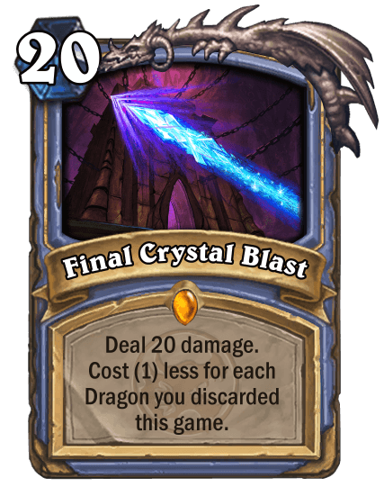 Conversely, I really dislike spells that have no basic function (referring to Power of the Dragonflame, Crystal Surge, Bites the Dust, etc.). Spells you have to build around can still be randomly generated, and if they are created outside of their intended situation they are completely useless. That's why To My Side! at least provides a single Animal Companion, and Apexis Blast can deal damage without having to summon the minion. With the spells above, however, if you have no Dragons to discard, they are a total waste of space :( It would feel bad in Mage in particular, a class that can readily generate these spells by chance.