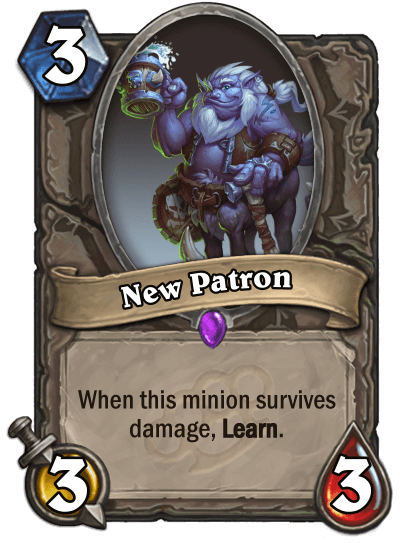 Pokeniner: "I couldn't really make the expansion possible without making this mechanic. During the first 2 weeks of storybuilding, I wanted to make Triclasses return, but old Triclasses just coming back seemed a bit stale or dull for this expansion. So I thought about what I could change, and looked into class synergy. Something I recognized as a constant were the classes ability to not have 3 classes share tribe similarities: Mechs are mainly Hunters and Warriors, Murlocs are Paladins and Shamans, Beasts are mainly Druid and Hunter, Elemental are usually Mage and Shaman, and Pirates are mainly Rogue and Warrior. The only tribe I could find that did more than 3 were Dragons w/ Priest, Mage, Warrior, and Paladins. I decided to make each Triclass a mix of 2 Experts and 1 Beginner to make the Triclasses thematic. I then thought "Wouldn't it be cool for Paladins to get help from a Mage of Shaman with some Elementals? or a Rogue to get help taming their dragons? And eventually the Learn mechanic was born. Each of the Learn cards: Beginner Infuser, Beginner Burner, Beginner Bat, and New Patron all are made to help players get into a style of the class's playstyle (Paladin being Heal, Rogues being Miracle and Spell play, and Warlocks being Zoo)"