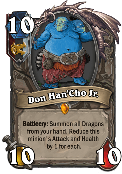 Pokeniner: "It was honestly to the fact that I never got to experience the Gadgetzan era, and how much of it was terrible (Patches meta). I decided I wanted to make Dalaran focus there to clear up the criminals and give the city a new identity in the Hearthstone universe, one that is free from it's old and painful memories. An example of this is the expansion's lore is Don Han'Cho Jr. who made a business meant to teach those who know of the terrifying power of Drakonid Operative, and explore the wonderful and majestic side of Dragons free from the Kabal."