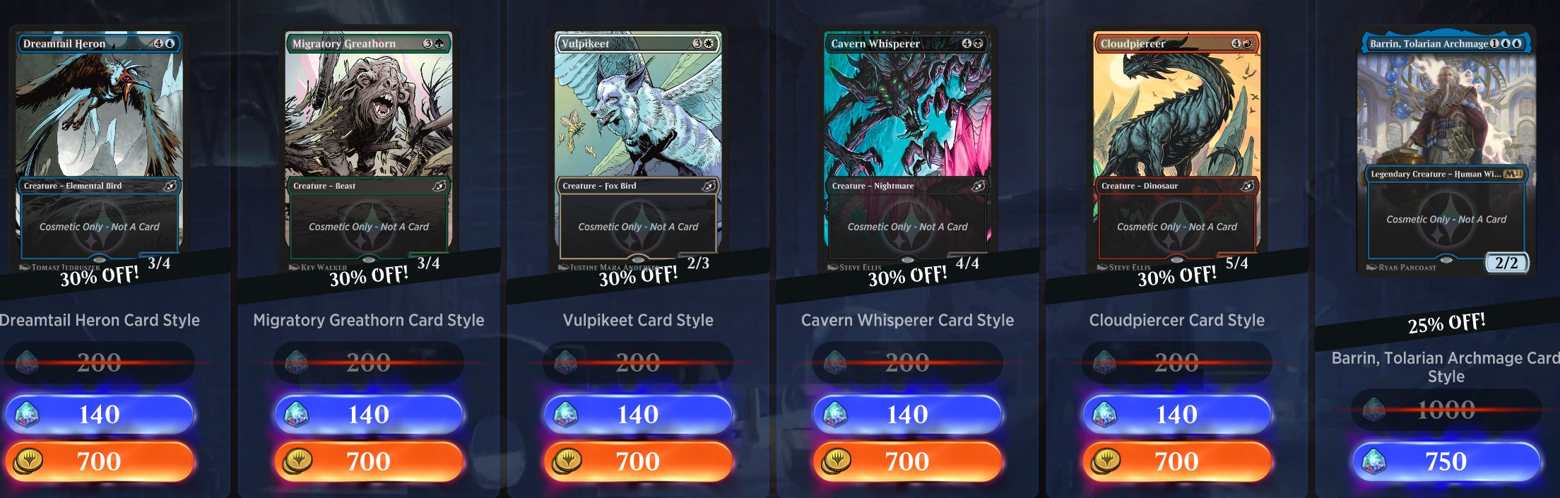 Today's showcase deal in the MTG Arena Store is 350 Gold for 50. Here are the rest of today's deals, which showcase some amazing art from Ikoria and an M21 card style featuring Barrin, Tolarian Archmage.