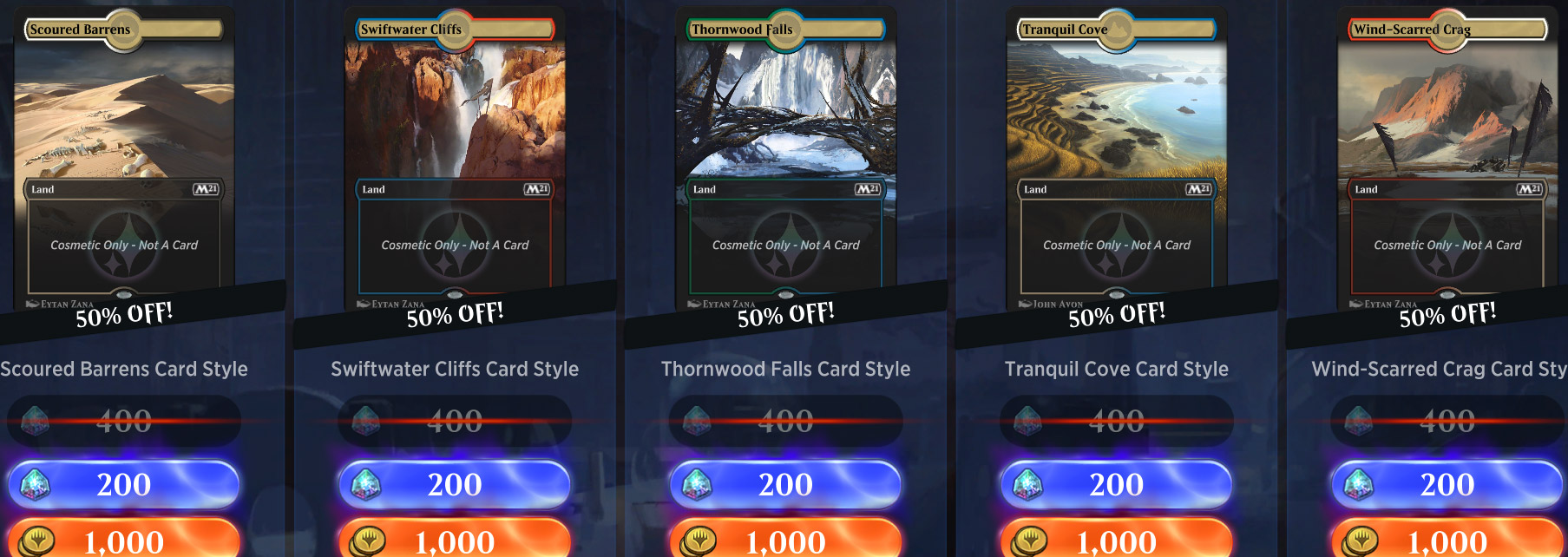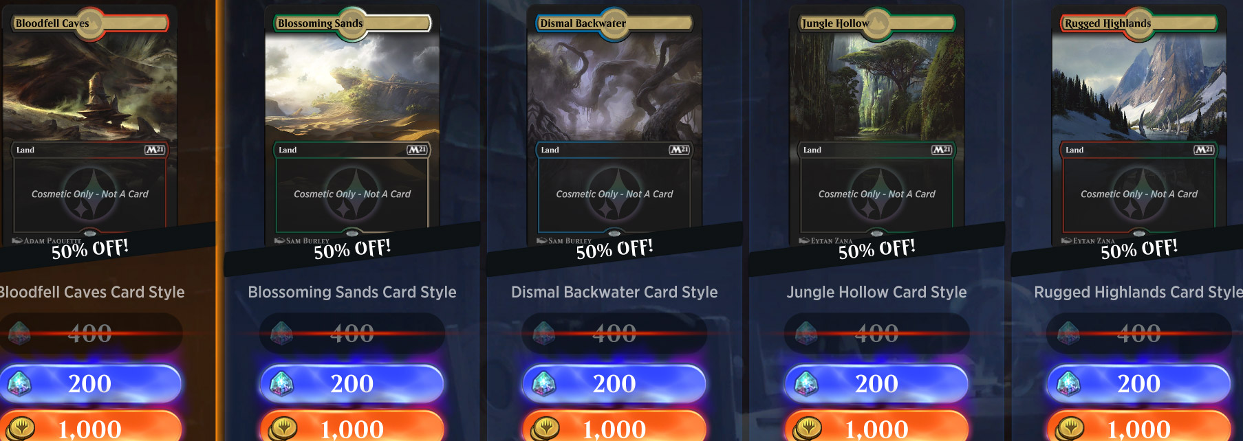 Today's deals are 50% off life-gain dual lands from Core 2021.