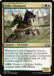 Luminous Broodmoth is occasionally a bit weird in that it comes down a turn later than we usually would like it to, but it being not only a permanent effect but also very easily giving our entire team flying in the face of wrath is amazing. Angelic Gift is also somewhat awkward due to it being hard to use our mana effectively if we play it on Emmara on three, but once again permanent flight attached to a cantrip is pretty good for this deck. As for cards that tap Emmara, Conclave Tribunal is easily one of my favorite Oblivion Rings that have been printed, as it eliminates a threat while still helping us make a larger board with Emmara. Finally, we have Ledev Champion, who just becomes massive. The lack of trample is a bit awkward, but we can often give him flying anyway since Emmara does not need it with the Champion on board.
