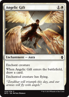 Emmara is a very strong two drop and she can cause games to spiral out of control fairly quickly if left unattended to. However, any of our opponents who play creatures can dissuade us from attacking, which is the main way we can get her tapped. Because of this, we fall back onto two main plans, either giving her evasion through flying or by using cards to tap her down. The best ways we have to do this are Luminous Broodmoth, Angelic Gift, Conclave Tribunal, and Ledev Champion.