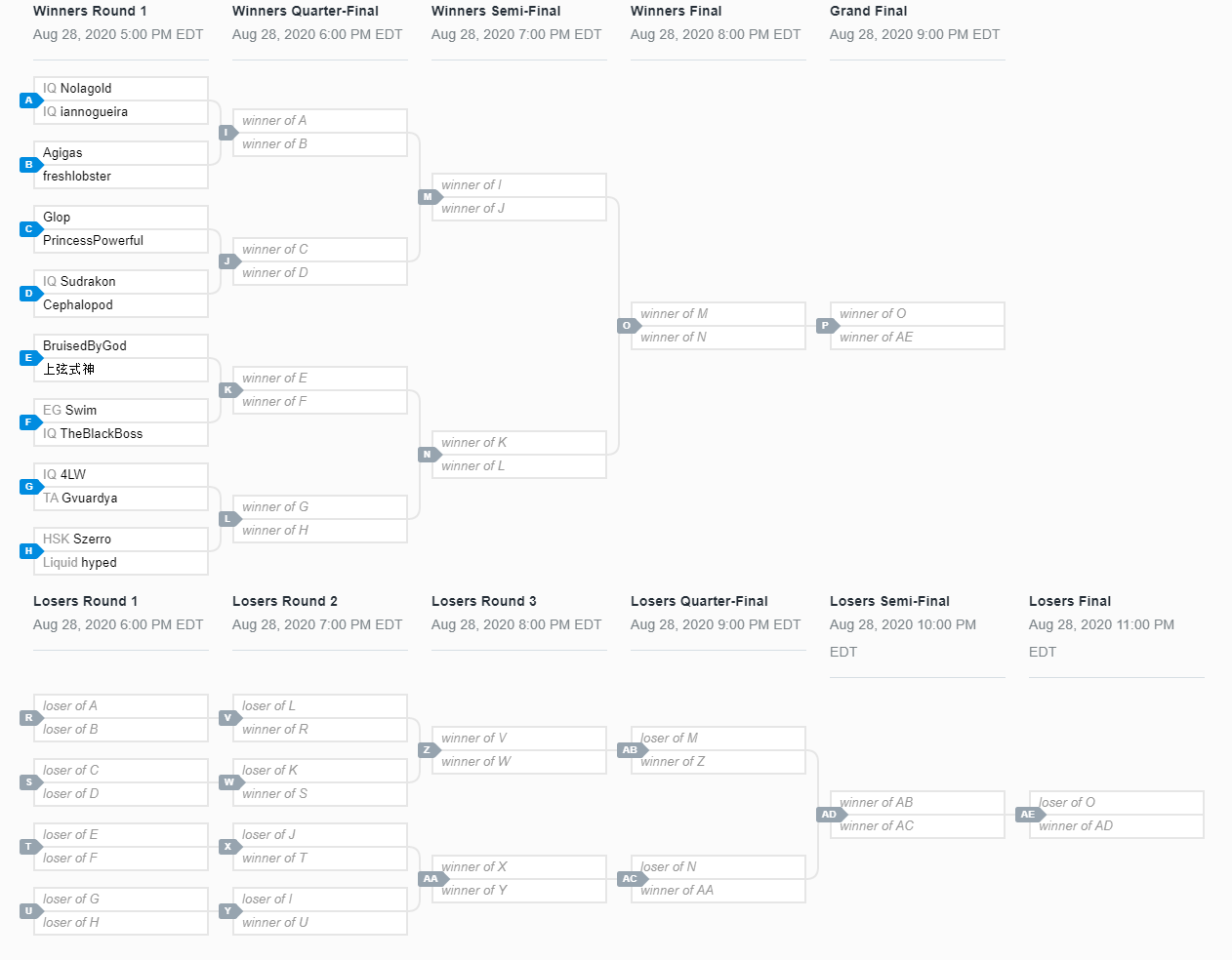 - The bracket is Double Elimination