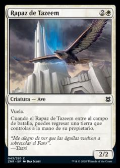 - When Tazeem raptor enters the battlefield, you may return a land you control to its owner's hand.