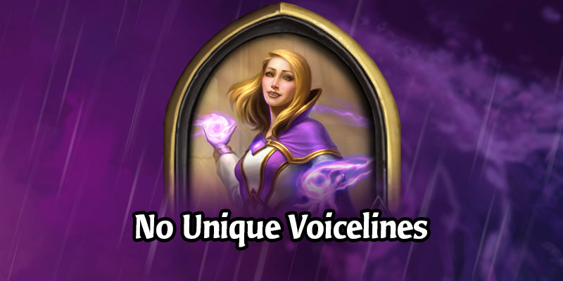 We had a chance to look into the new Mage hero, Scholar Jaina, and unfortunately, we found out she doesn't have any custom voicelines. Scholar Jaina will be available next week if you're still interested, and she'll be arriving with the Book of Heroes Adventure.