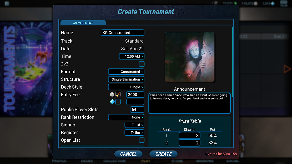 As you can see, there's quite a lot of customization options for it. Now, I'm neither a tournament organizer, nor a competitive player, so this is about as much as I can tell you on the matter, but you can check this article on how to organize your tourney, courtesy of Erobert from Kryptik Gaming.