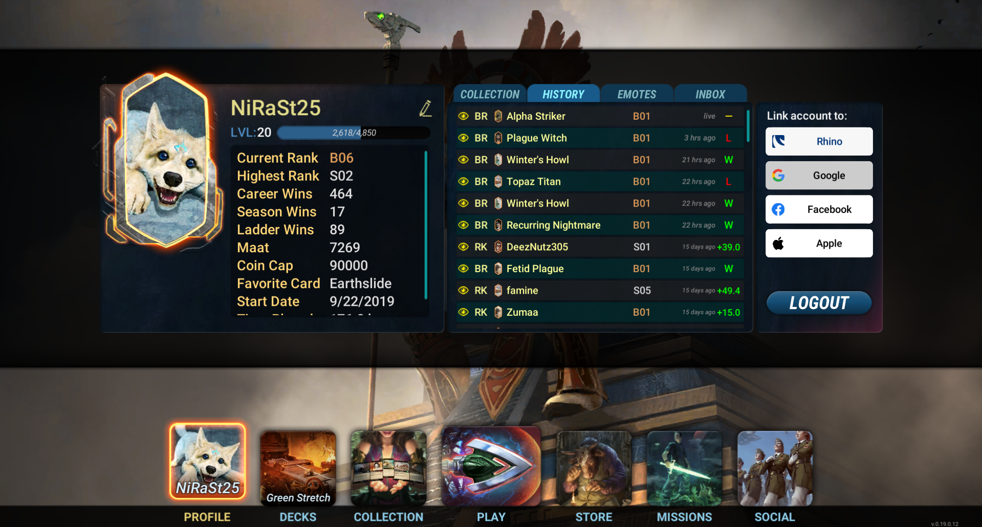 One thing it did have though which was a game changer to me, especially for a smaller game where it's harder to find those online resources, was a built-in match history for all the leagues/tiers, whatever you wanted to call them, of the last 10 games, 4 of the cards played from the deck, and you could watch a replay of the match from either players perspective. Basically you could see the meta at any time at any rank and basically have guides just from watching the best players play the decks out in real replays. Very cool. It's much more fun to "go fishing" for a new deck by watching someone in high ranks cheese a win with something goofy and then build it yourself then to find a proof of concept online.