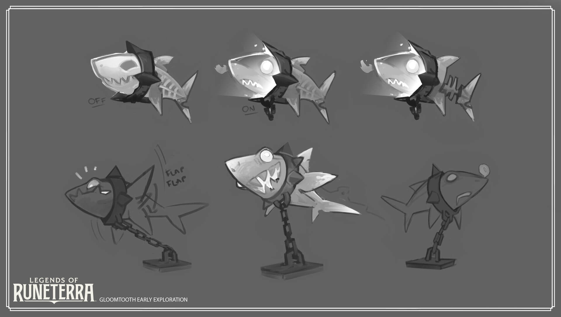 Gloomtooth notably went through design changes, conceived as multiple different shark types during its development.