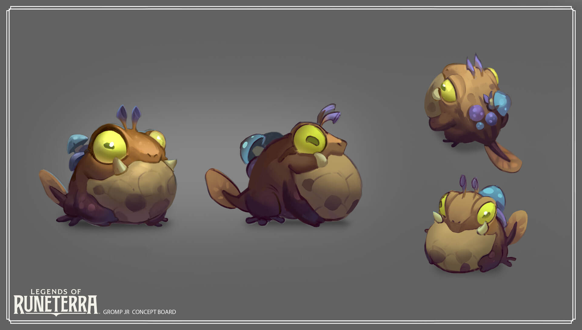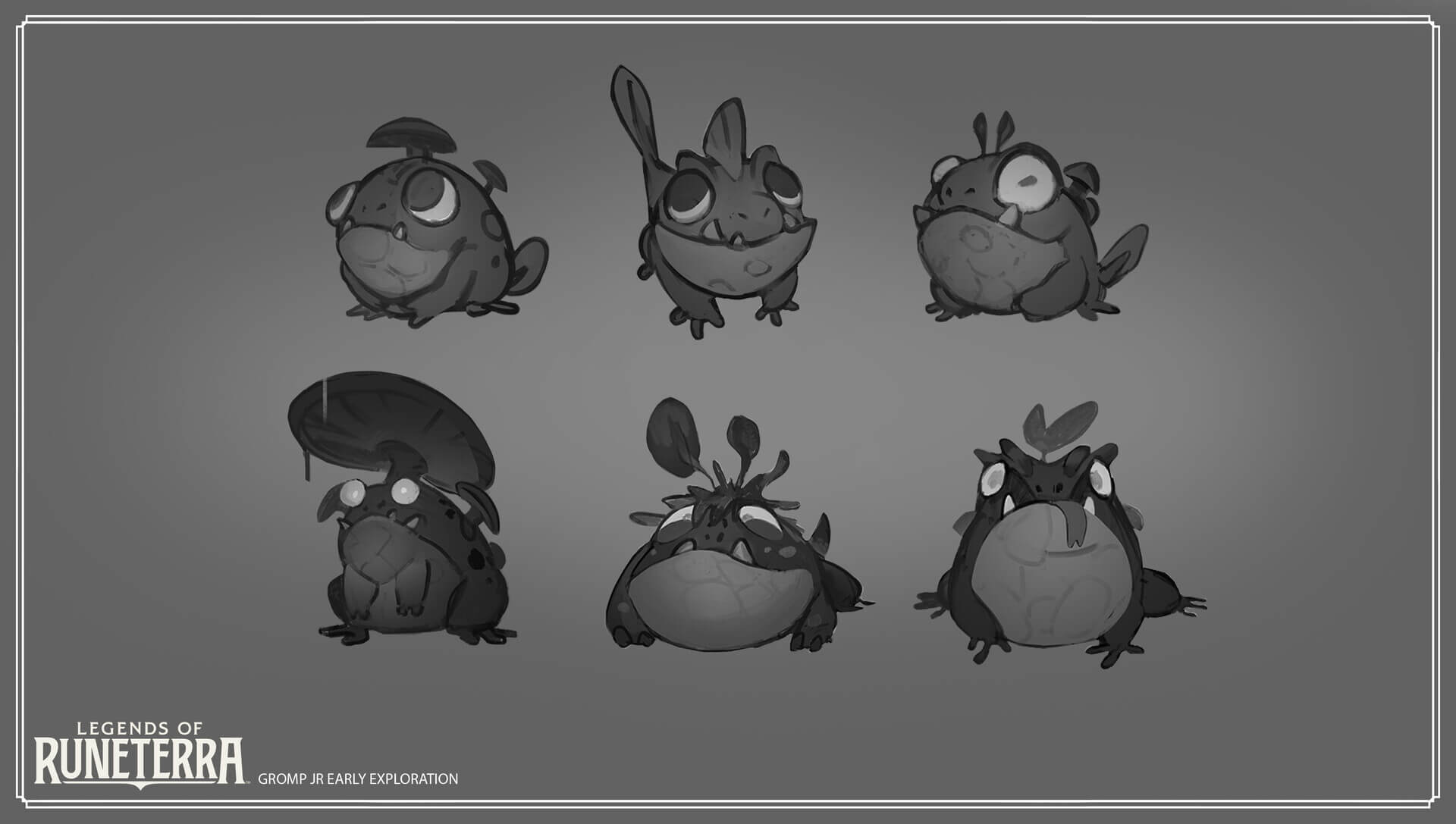 Gromp Jr. notably went through many changes with the shape of its face and the mushrooms on its head before landing on the final product.