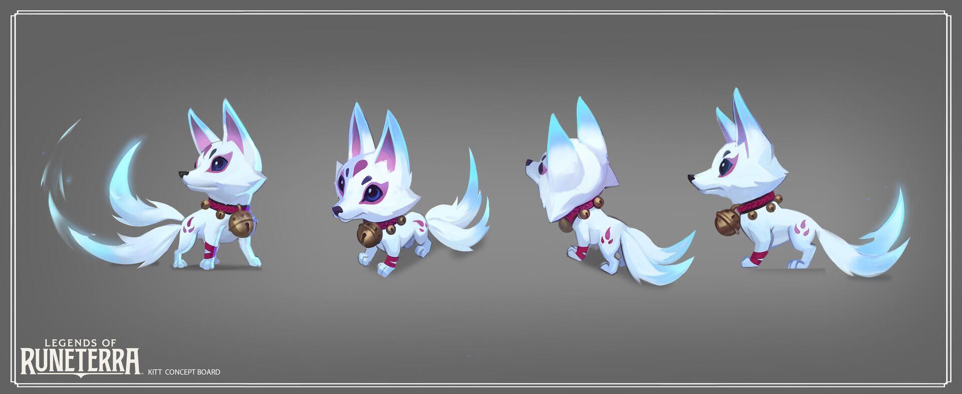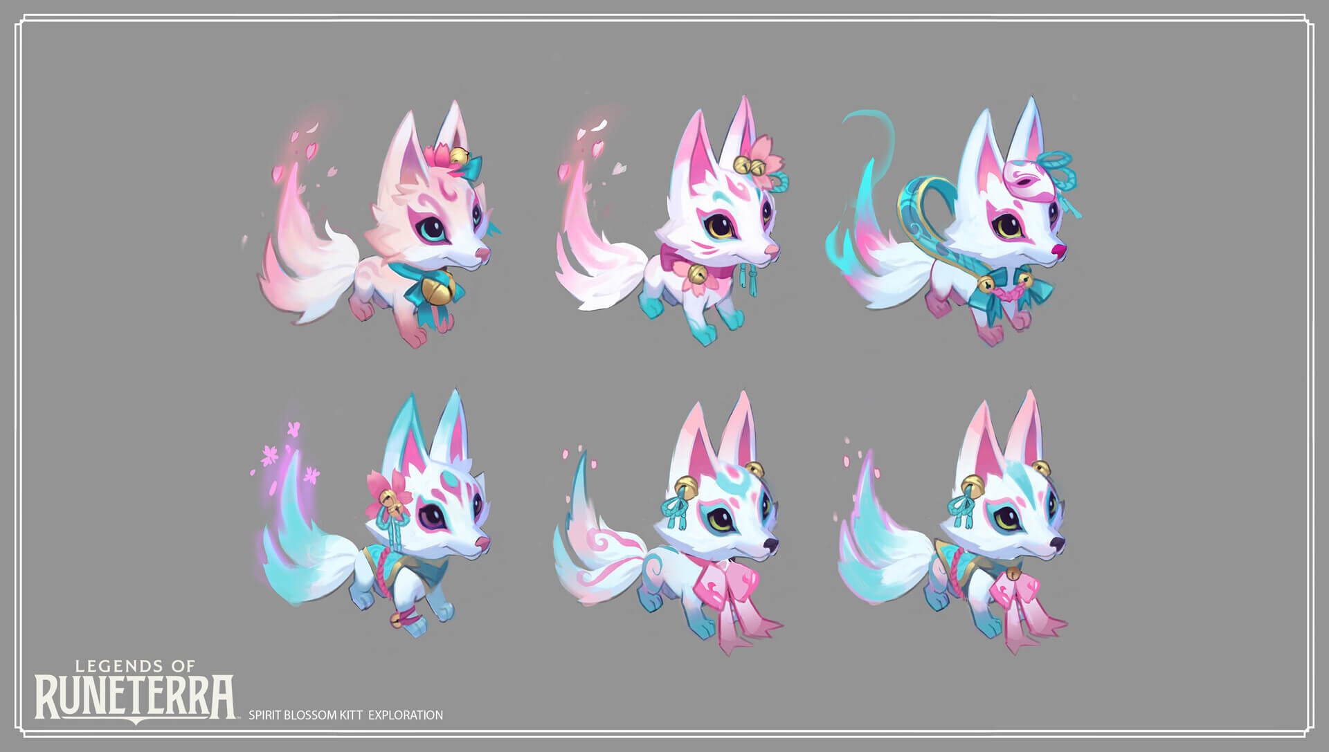 Here is Kitt as it appears in Spirit Blossom form. This version of Kitt received a significantly larger amount of changes in development than the normal version, with changes to the color patches and accessories. The final product appears to use the top-right design and given pink designs on its ears.