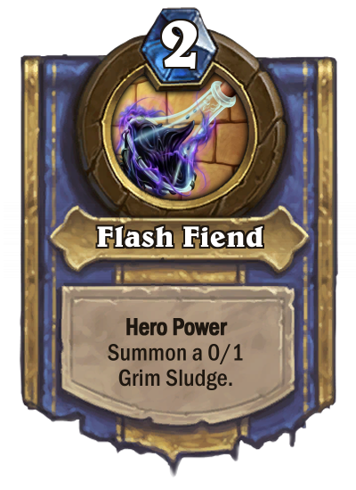 This one comes in the form of my Experimenter hero. A former student of Professor Putricide, Xel Grimwarden decided she'd had enough of experimenting on herself and went out into the wide world to find some more interesting test subjects. The Experimenter class focused on buffs, 0-Attack synergy, and swapping (usually Attack/Health swapping).