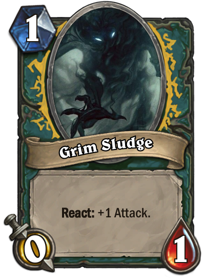That keyword on the Grim Sludge - React - is what I'll be talking about. It was something I fell in love with when they first introduced it to Hearthstone (unkeyworded, obviously) and I was so sure that I could make a bunch of awesome designs with it... without actually coming up with more than a couple of designs, first. That turned out to be a little bit of a mistake.