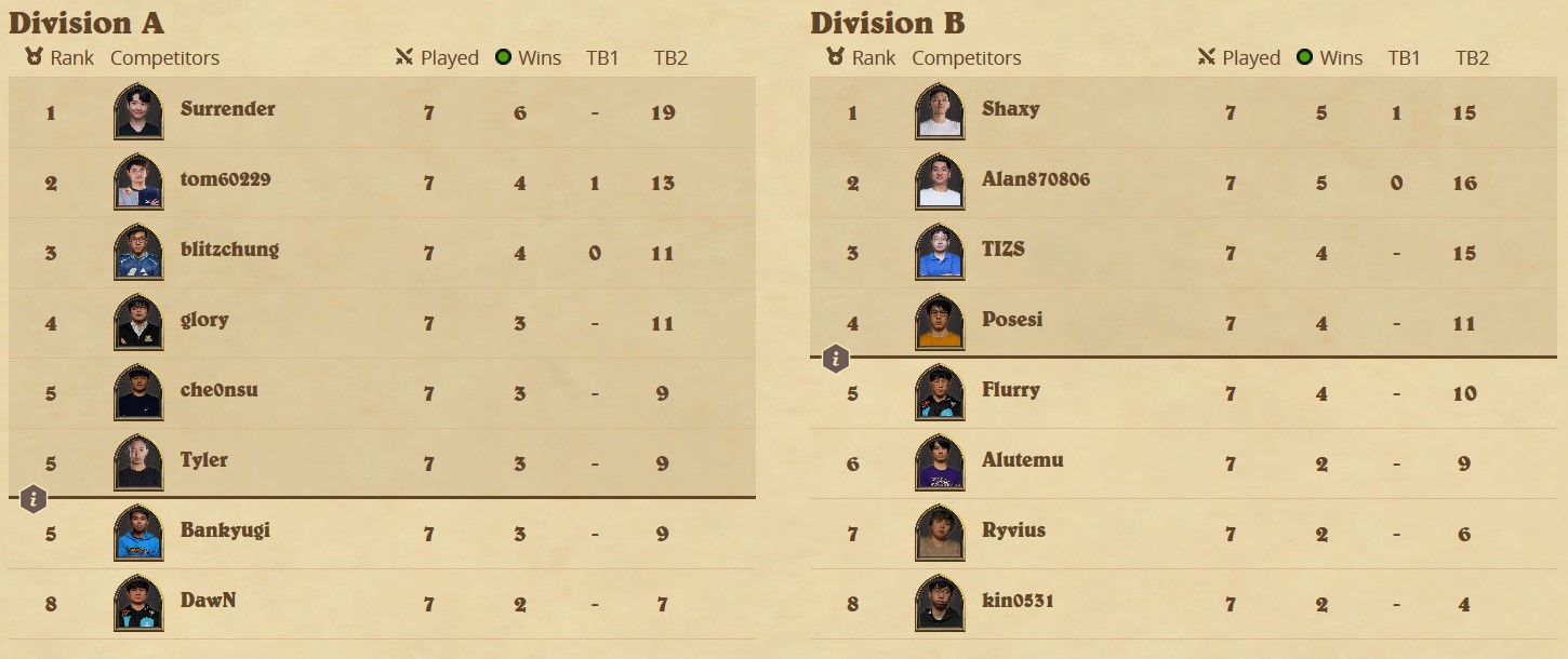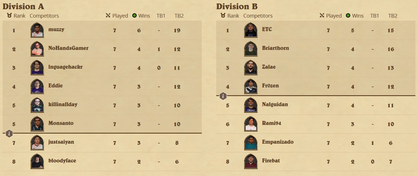 Another, more inconsistent, curse faced BoarControl, who was the last remaining European T1 player after Feno and Orange were relegated last year. He won his first and his last match of the Division, but suffered a five-match loss streak in the middle, which left him needing other results to go his way. As AyRoK beat Warma on Saturday, he also relegated BoarControl from Grandmasters.