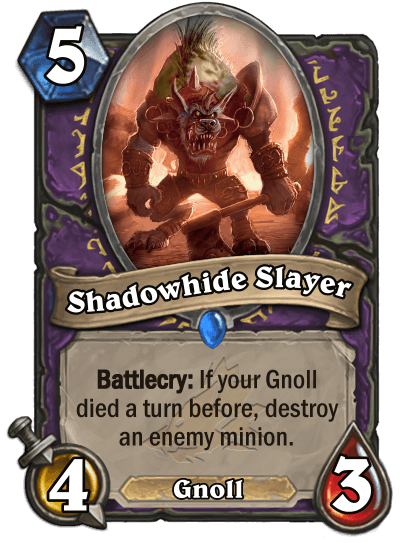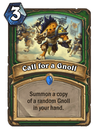 Gnolls have special synergy that triggers if a friendly Gnoll died last turn when you play it. Existing Gnolls in the game include Shaky Zipgunner, Tanglefur Mystic, Hogger, his WotOG counterpart, as well as both of their respective Gnoll tokens.