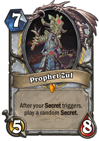 KingKuba: "Each class in Escape from Elwynn has 5 cards for the prisoners and 5 cards for Stormwind. Prophet Zul represents prisoner side of the conflict in Priest. He's a mysterious Zandalari troll which uses dark magic for his evil plans. That's a great basis for Priest Secrets, which relate to trolls and their little mysteries: Restless Spirits, Shadowed Mind and Deal with the Loa."