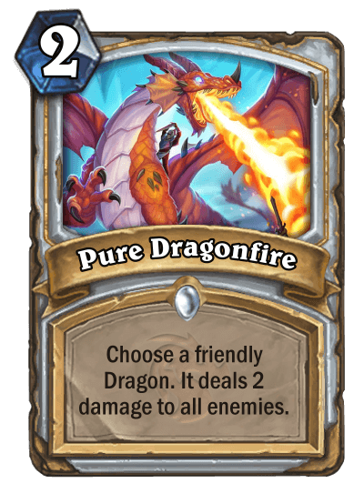 LutriSpellcaster: "I think my favourite card from the set is Pure Dragonfire with the implicit requirement of needing to control a dragon to cast it. It also combos well with Crystal Dragon as the spell would effectively have lifesteal. Also the art on the spell is really cool."