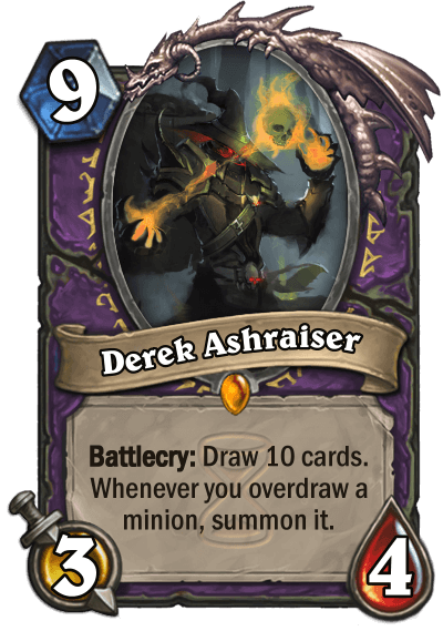 MrRhapsody: "As a Warlock fanboy, I want to highlight the Overdraw Warlock archetype, with Derek Ashraiser, Cycle of Ash, Ash Weaver and Rise of the Undead. Man, how i wish that those cards existed, i have lost the count of how many cards i've overdrawn in my life, either by a careless Life Tap, or by a stupid, disgusting, dumb and repulsive Coldlight Oracle!"