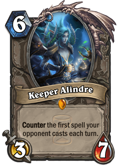 Keeper Alindre was supposed to be a reference to my favorite YU-GI-Oh! (first card game i ever played) card of all time: Legendary Six Samurai- Shi En. But sadly, i had to change the name, art and flavour to fit the set.