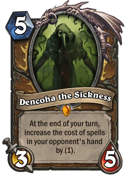 MrRhapsody: "Reality is the greater inspiration when making a art piece, and this expansion was no different. The real world is going to hell, people are turning insane with all the bad news, we start the year with a World War menace, then the Covid came, and then the "son" of the biggest volcano ever awakened, then riots started to happen around the world, then a giant meteor got close to the Earth, and yada, yada, yada. Then i tried to take some good from the disgrace, and this custom expansion was the "fruit" of it. The first to take a theme was Druid, there was just no way i wouldn't represent the Covid pandemic, some examples are Transmition and Cure Testing . Bonus info: Dencoha's name is a Word Play with previous pandemics that happened in my country."