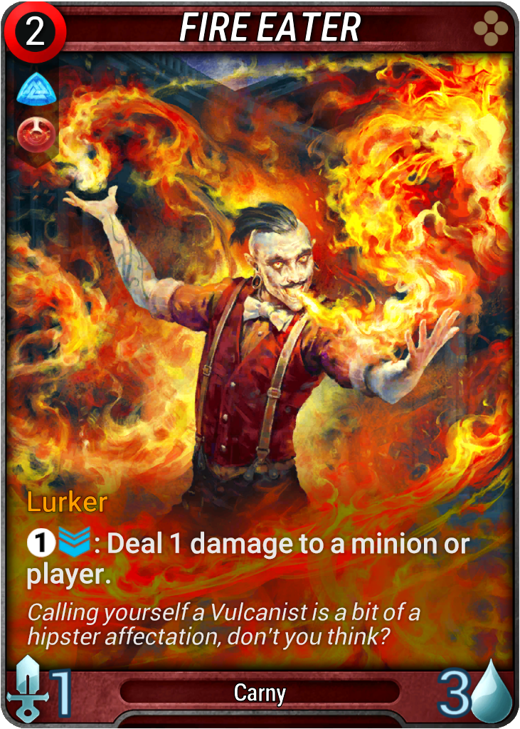 - Fire Eater - Now has 1 Attack (Up from 0). Card text updated to change "anyone" to "minion or player".