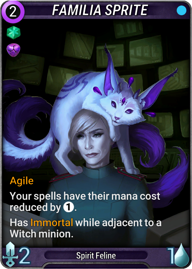 - Familia Sprite - Now has "Your spells have their mana cost reduced by (1)".